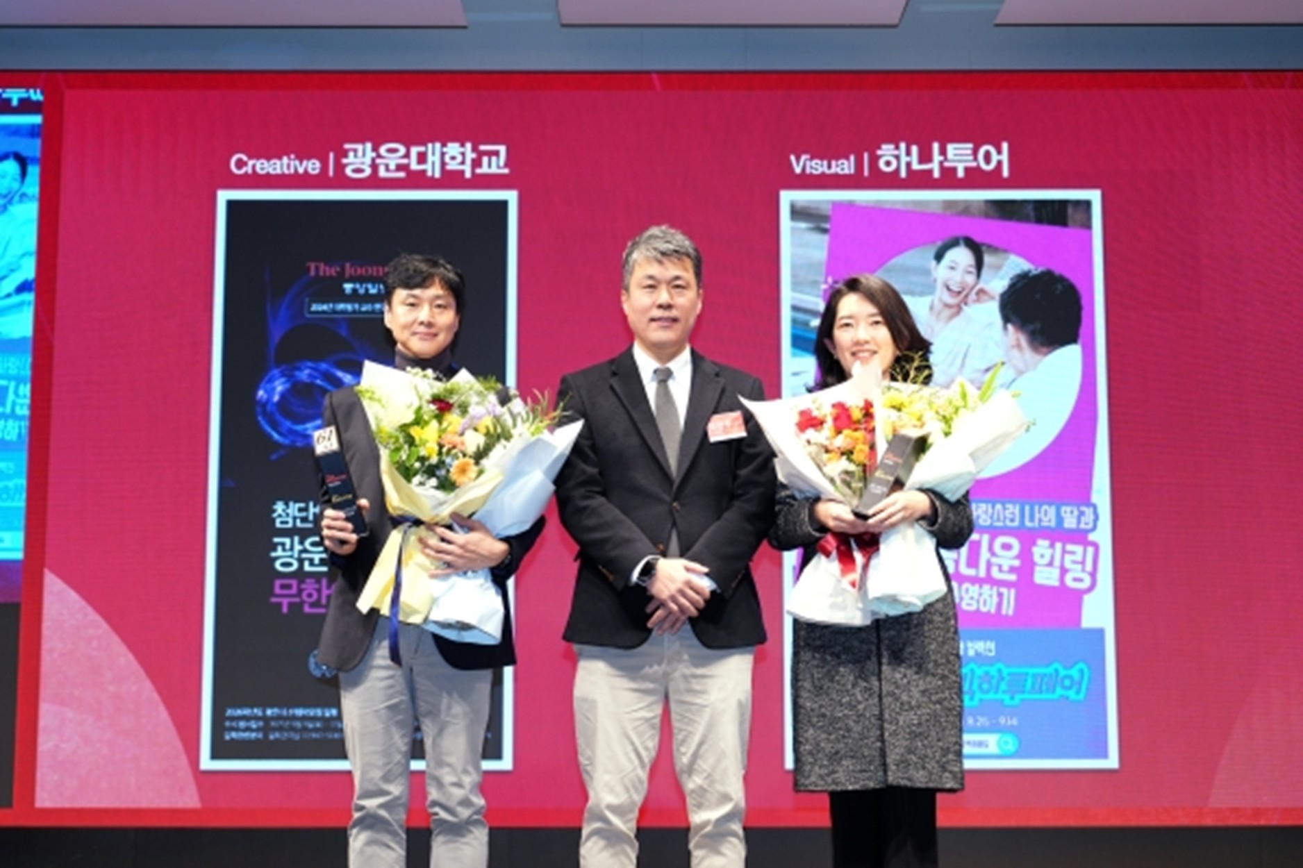 Sang-Yeon Kim (left), Director of External and International Affairs, who oversaw the advertising campaign, poses for a commemorative photo after receiving the award.