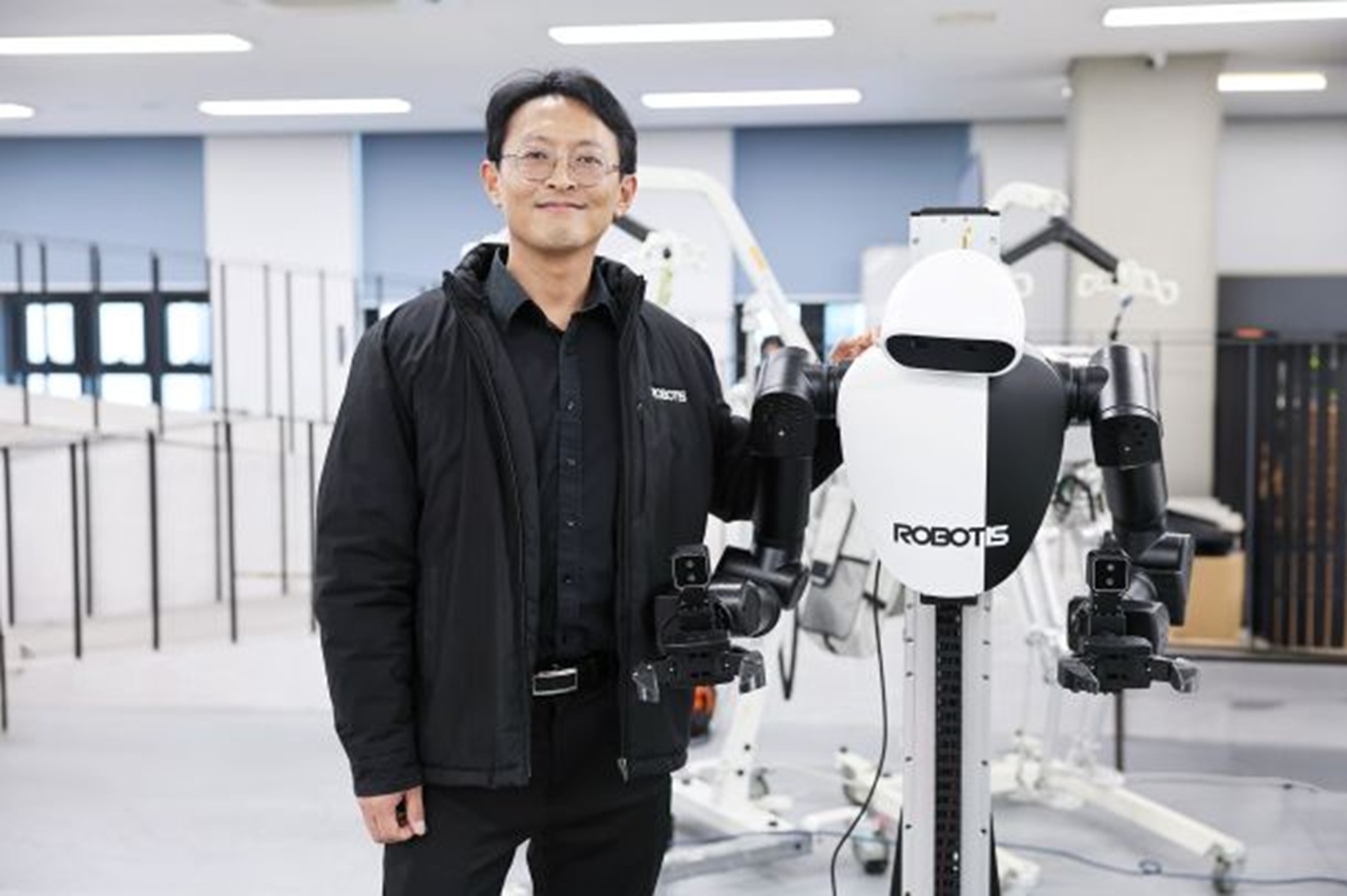 Yoonseok Pyo, Vice President of ROBOTIS, Standing with a Robot Currently Under Development