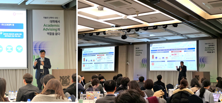 Vice President Seok-jae Jeong (Head of the University Innovation Project Group) has been actively disseminating Kwangwoon University’s educational innovation cases across the country. Centered on the theme, “An Organic Linkage Model between Class Advisor Systems and Major Exploration Guidance for the Successful Settlement of Major selection Autonomy,” Vice President Jeong was invited as a consecutive speaker at several high-profile forums. These include the 2nd Academic Advising Forum at Seoul National University (Dec 16), the 2025 University Innovation Support Project Metropolitan Area Innovation Networking & Performance Diffusion Forum (Jan 15), and the 2025 University Innovation Forum for Sustainable Development (Jan 29).